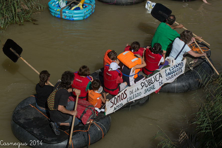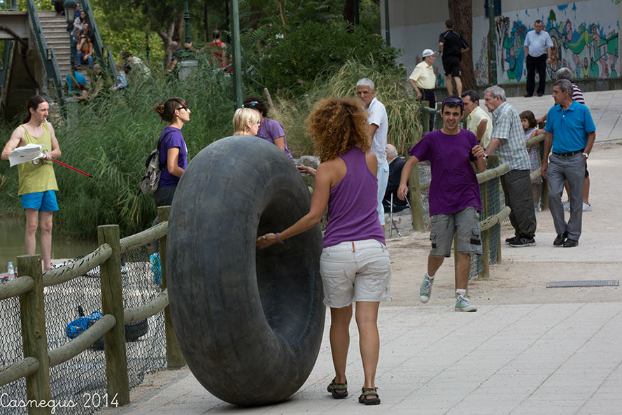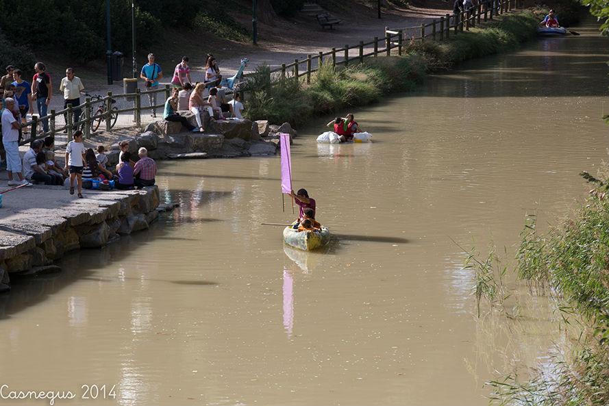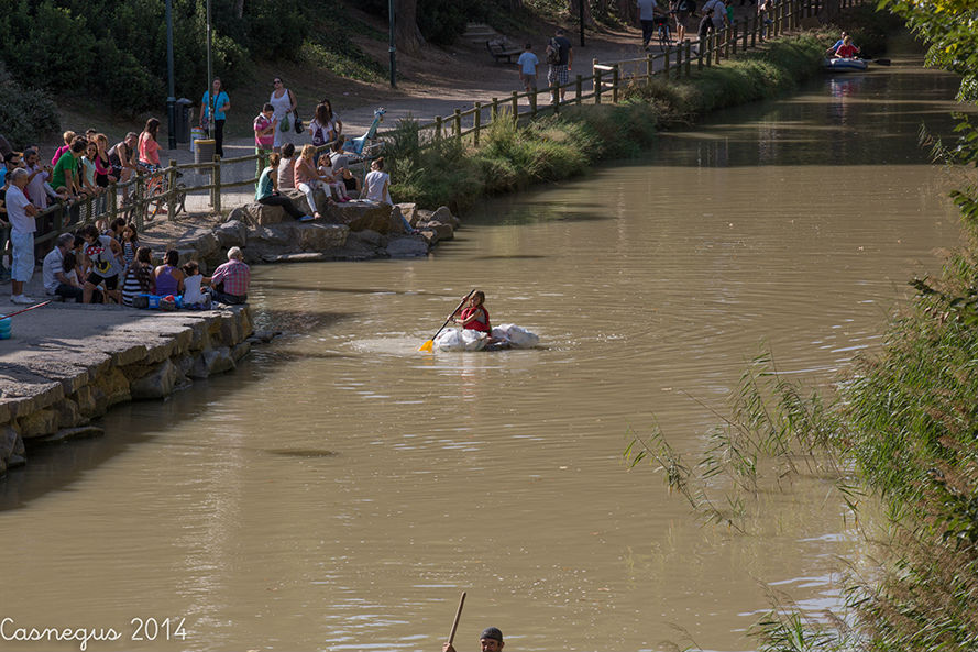 Esta mañana (domingo) me he subido al Aula de Naturaleza del Parque Grande J.A Labordeta para ver si estaban con el anillamiento de aves, al no encontrar nada que me interesara he continuado por al Canal Imperial y al pasar junto al bar-terraza el Corazón Verde se observaba movimiento de flotadores de ruedas de camión.... he pensado y...¡la bajada del canal!